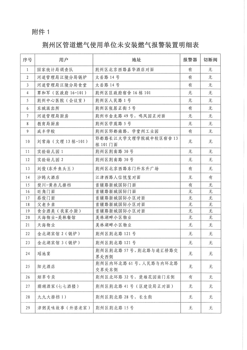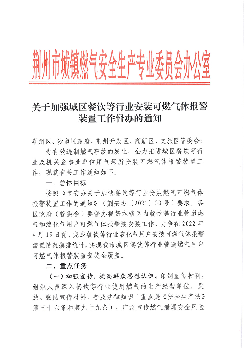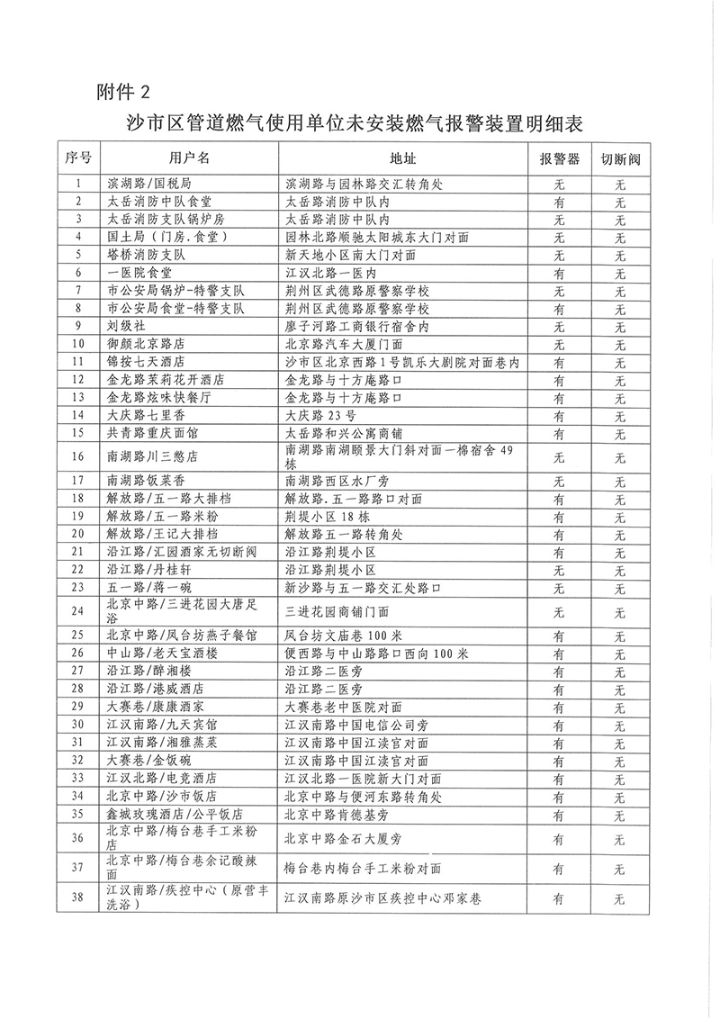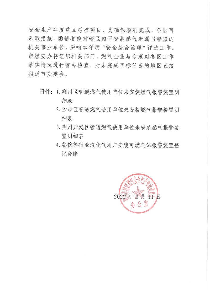 关于沙市区管道燃气用户可燃气体报警装置安装全覆盖的通知