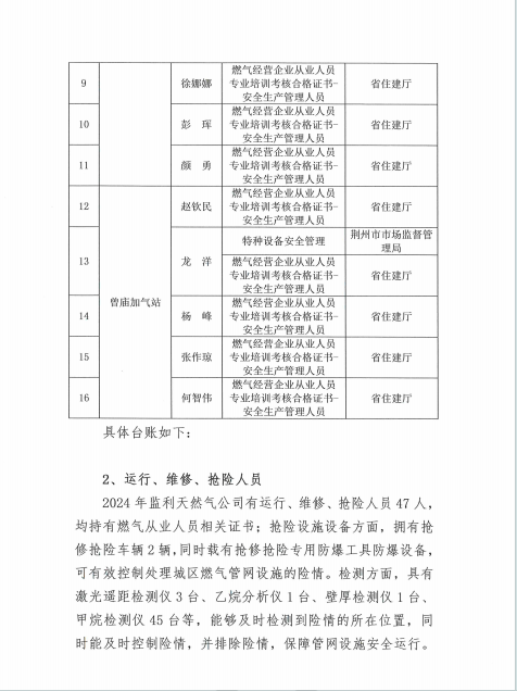 荆州市天然气发展有限责任公司企业2024年度报告