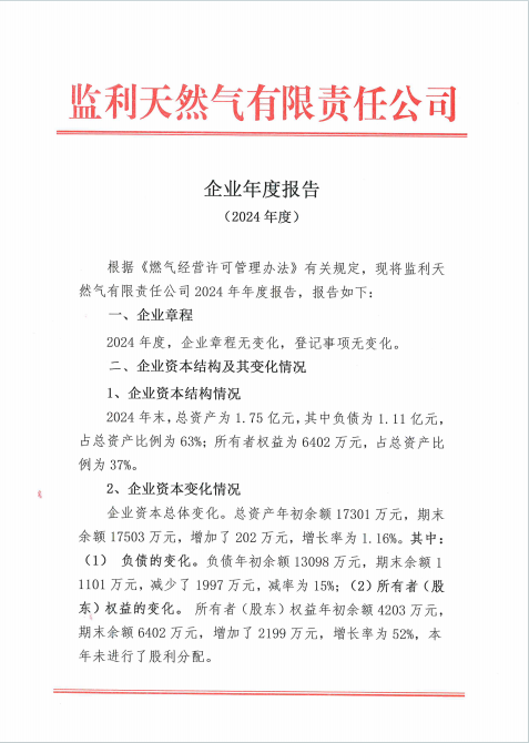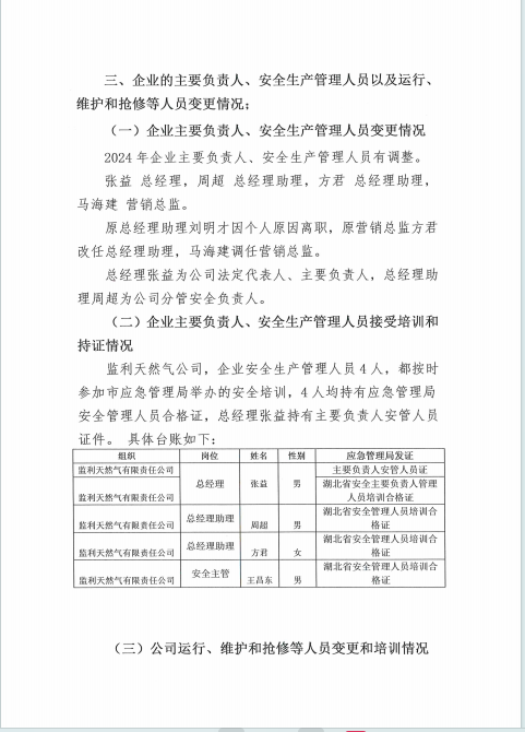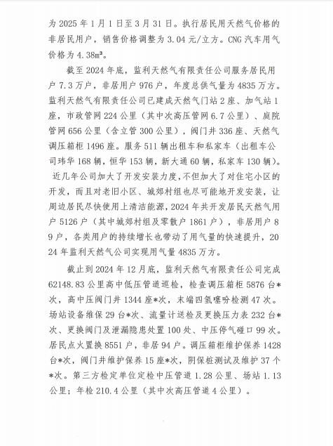 监利天然气有限责任公司2024年年度报告